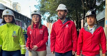 El alcalde Mayor de Bogotá, Carlos Fernando Galán, en compañía de la secretaria de Movilidad, Claudia Díaz; la gerente de Transmilenio, María Fernanda Ortiz; y el director del instituto de desarrollo urbano (IDU), Orlando Molano, habilitaron el carril exclusivo de TransMilenio del Eje Ambiental, lo que permite retomar las operaciones de las estaciones ‘Museo del Oro’ y ‘Las Aguas – Centro Colombo Americano’.